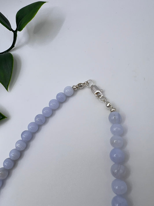 Chalcedon Perlenkette – Sanfte Stärke in zartem Blau