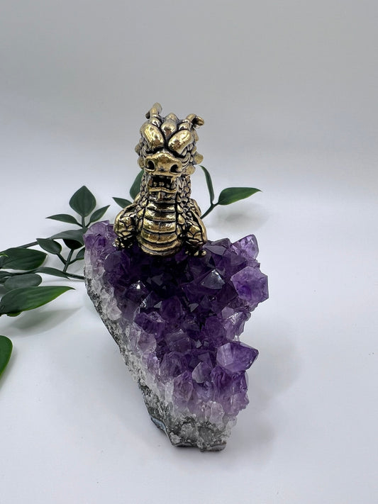 Amethyst-Cluster mit Drachenfigur – Mystik, Schutz & spirituelle Kraft