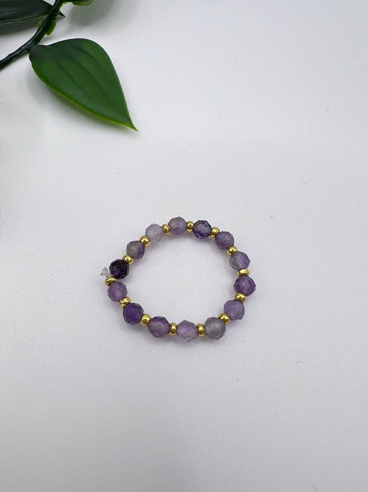 Kristallringe mit goldenen Zwischenperlen – Bergkristall, Amethyst, Aquamarin, Mondstein & bunter Turmalin