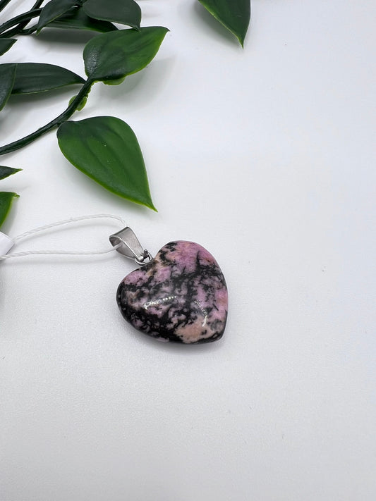 Rhodonit Herz Anhänger – 2 cm, mit versilberter Öse