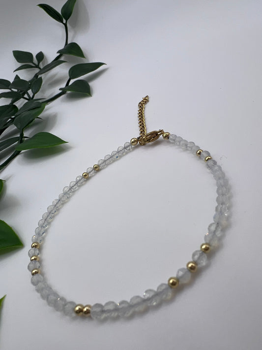 Mondstein-Fußkette, facettiert – Zarte Eleganz & feminine Ausstrahlung | 3 mm Perlen