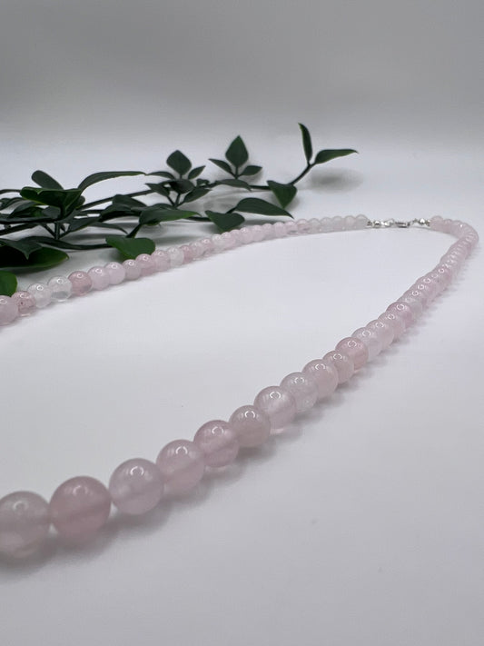 Rosenquarz Perlenkette – Liebe zum Tragen