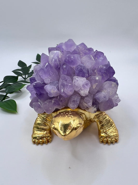 Amethyst-Cluster mit Drachenfigur – Mystik, Schutz & spirituelle Kraft