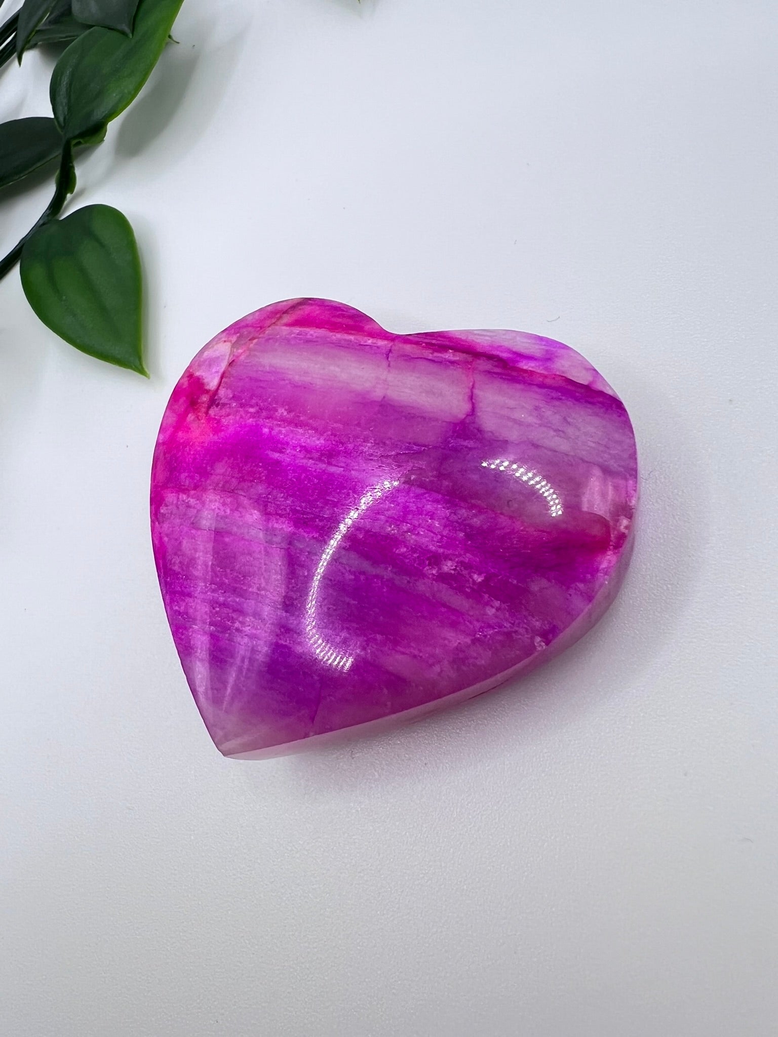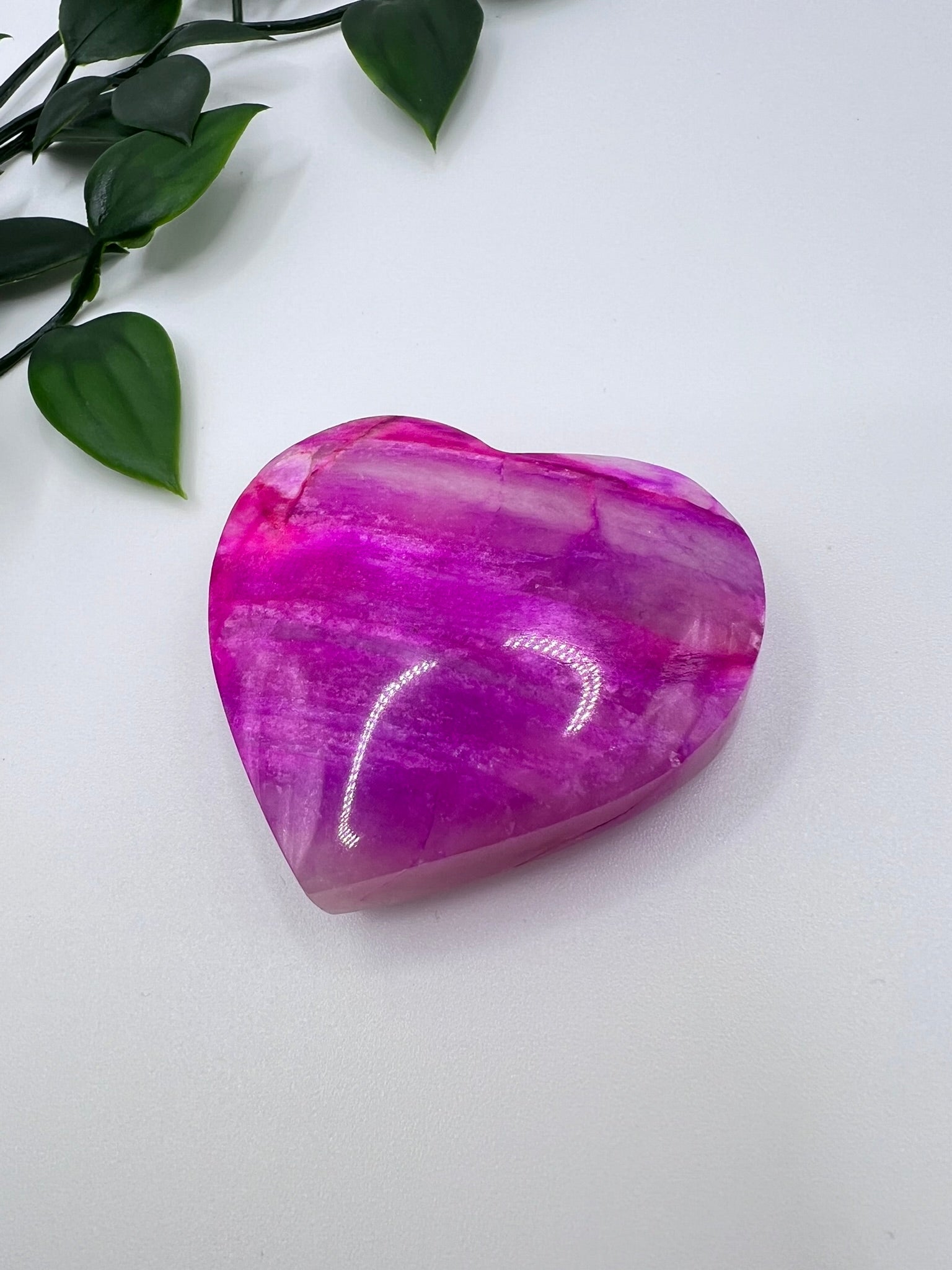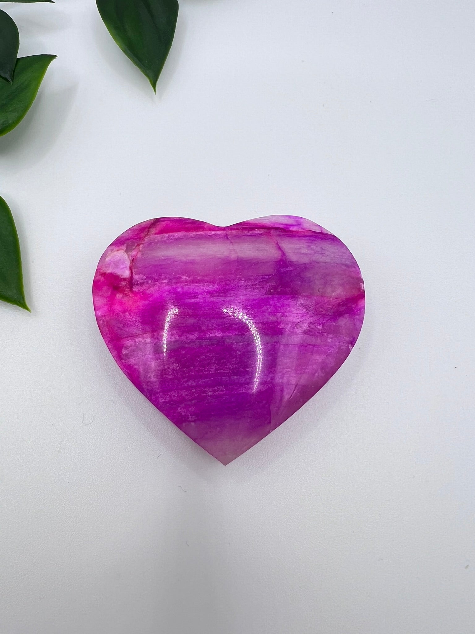 Gefärbtes Mondstein-Herz – Pink, ca. 5 cm groß &; 1,3 cm dick – Symbol für Herzenergie & sanfte Stärke